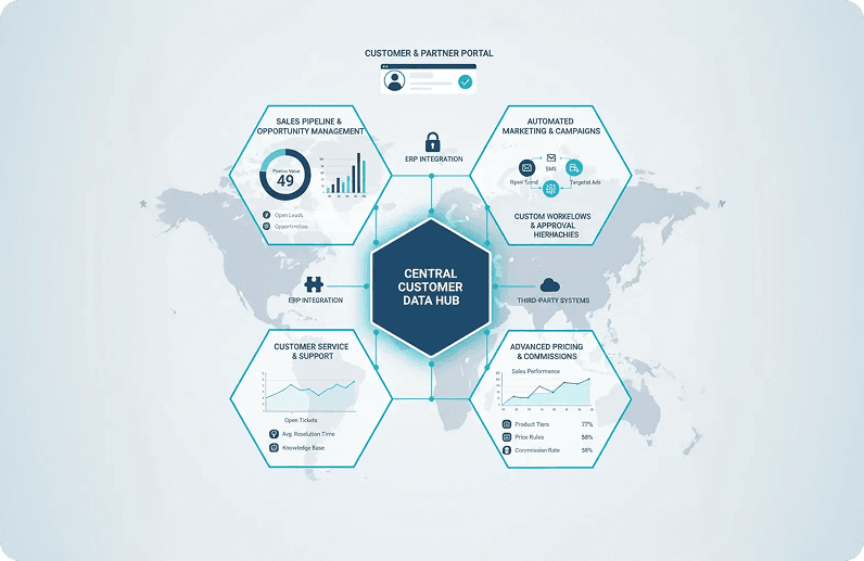 Customer Relationship Management platforms manage sales, marketing, and customer service through a single system, delivering consistent engagement and complete customer visibility.
