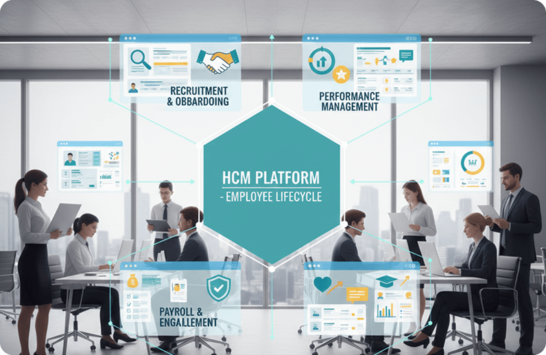 HCM solutions support the entire employee lifecycle, enabling organizations to manage talent efficiently while maintaining compliance and employee satisfaction.